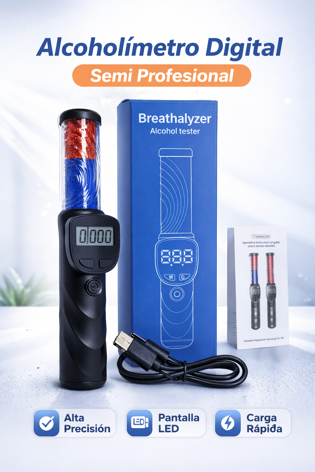 ALCOHOLÍMETRO PORTATIL DIGITAL SEMI PROFESIONAL PARA ALIENTO